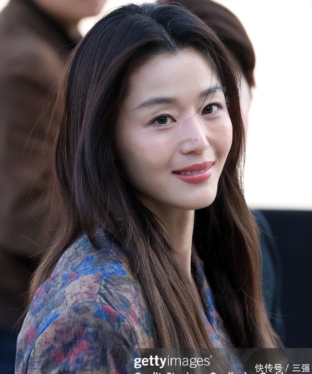 全智贤的脸,法令纹已经藏不住了。皮肤干瘪暗黄,眼窝也陷下去。那种饱满的光泽感,彻底消失了。连眼神都跟着黯淡,整个人像是被抽走了一部分精气神。女明星当然也会老。这道理谁都懂。但看到她现在的状态,还是让人顿了一下。不是那种缓慢的、可以预期的变化,是有点突然的断崖。平整度这东西,一旦失去,就再也回不来。