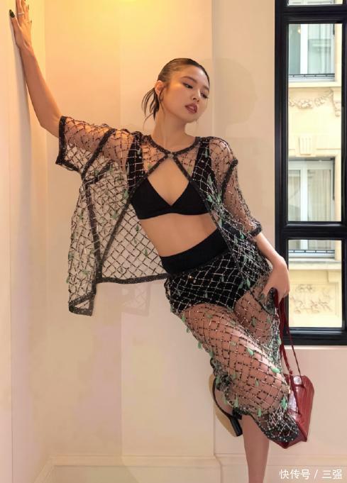 她的意图其实挺直白的。黑色内衣就那么直接露在外面,事业线一点没藏着。皮肤露得太多,那种半遮半掩的微妙美感就彻底消失了。结果反而透出一股子俗气。